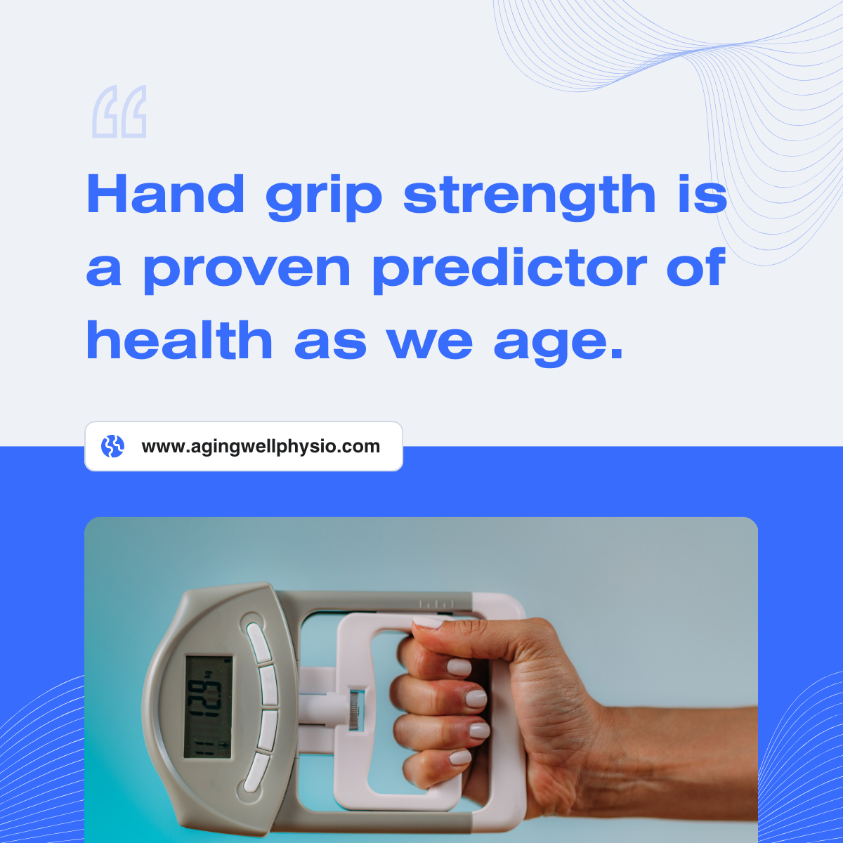 Let’s talk about longevity and small ways to predict how you’re doing. Aging is a biological process that is inevitable, but it doesn’t have to be a steady decline! It’s important to keep yourself moving and strong as you age to remain independent. Taking a look at your strength, balance, and mobility can help you understand how you are doing now, but can also help predict how you will do functionally in the future.